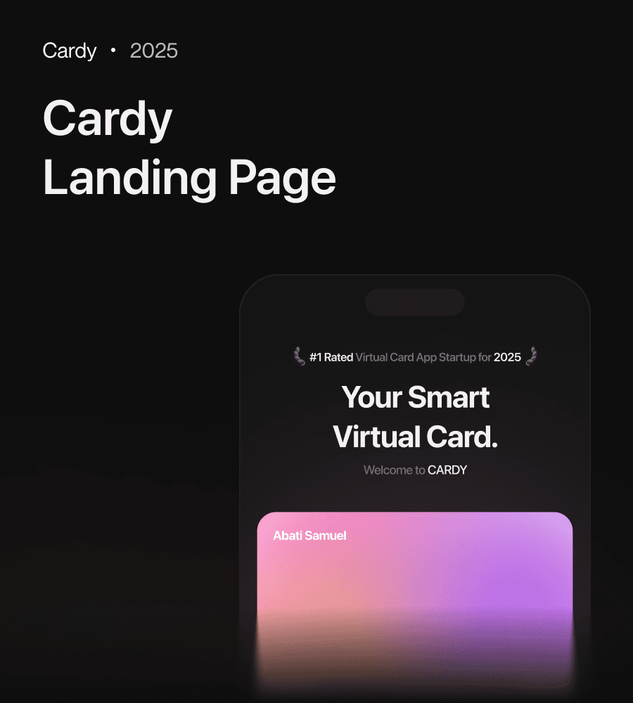 I designed cardy, a personal landing page for instant virtual cards with dynamic CVV, spend controls, and global access, designed for secure, privacy-first payments.