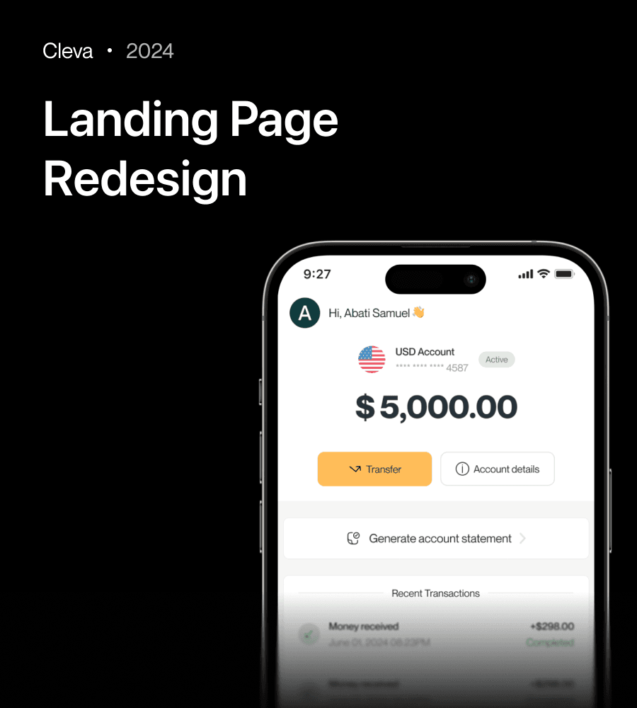 I redesigned Cleva’s landing page with bolder visuals, clearer messaging, and stronger CTAs for its USD banking features.